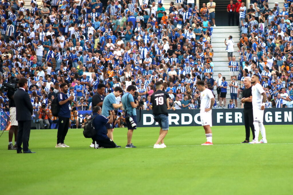 Seguiram-se momentos de troca de galhardetes entre a equipa anfitriã e a visitante e as homenagens ao antigo treinador dos Dragões, Luís Castro, e a dois ex-atletas, Alex Teles e Otávio, o “baixinho”, todos agora nas fileiras do Al-Nassr.