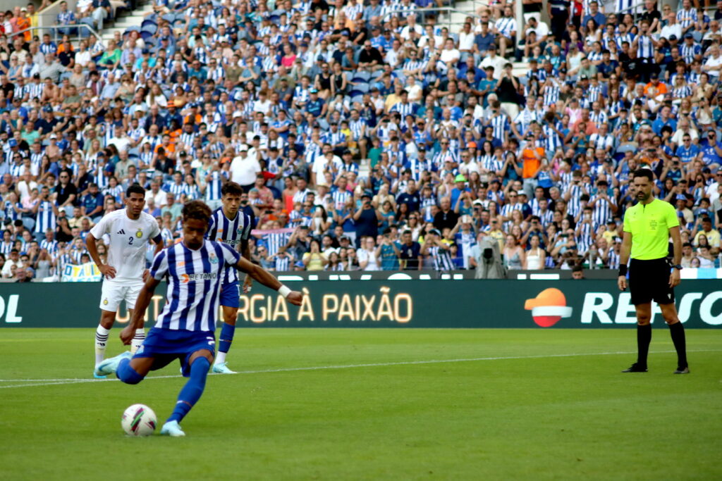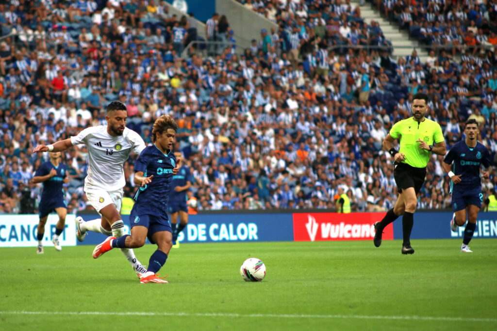 O Dragão rugiu mais alto e o FC Porto derrotou Al-Nassr, sem Ronaldo, num espetáculo de futebol que valeu sobretudo na primeira metade, em que aconteceram os golos. Claro que era um particular, e sobretudo dia de apresentar os velhos e novos rostos da equipa da casa, começando pelo novo treinador, VItor Bruno, num ambiente de festa que começou com apresentação dos jogadores um a um, a surgirem dos quatro cantos da bancada, descendo a escadaria pelo meio dos adeptos até chegaram ao relvado. Foi uma situação suis generis que havia começado com o autocarro da equipa a parar em frente ao estádio e todos os jogadores a seguirem a pé pelo meio dos adeptos atónitos, pela inovação.