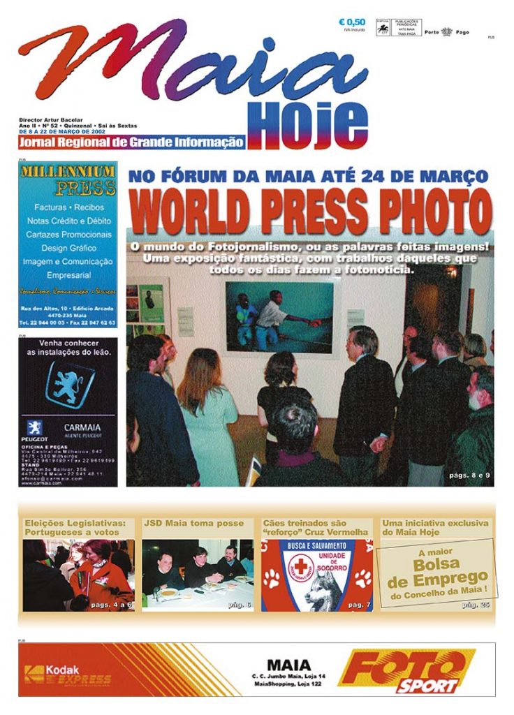 A inauguração da Edição 2001 da World Press Photo, patente no Fórum da Maia, trouxe até às “terras do Lidador” diversas individualidades que não quiseram deixar de comparecer na abertura oficial desta exposição. Entre as centenas de pessoas que acorreram a este marco do Fotojornalismo mundial, marcaram presença Kari Lundelin, Comissário da World Press Photo Fundation e vários fotojornalistas como Paulo Duarte, Paulo Santos, Fernando Veludo e Rui Xavier, vencedor do “Prémio Visão” de Fotojornalismo. Uma exposição fantástica, com o trabalho daqueles que todos os dias fazem a fotonotícia.