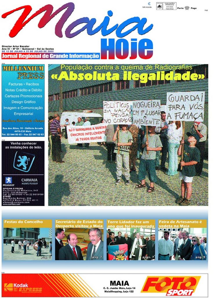Em frente à empresa Antunes & Irmão, Nogueirenses contestavam queima de radiografias! Graves problemas respiratórios, alergias, poluição ambiental e maus cheiros foram o mote necessário para que largas dezenas de habitantes da freguesia de Nogueira realizassem uma manifestação contra a queima de radiografias efetuada pela unidade industrial Antunes & Irmão.