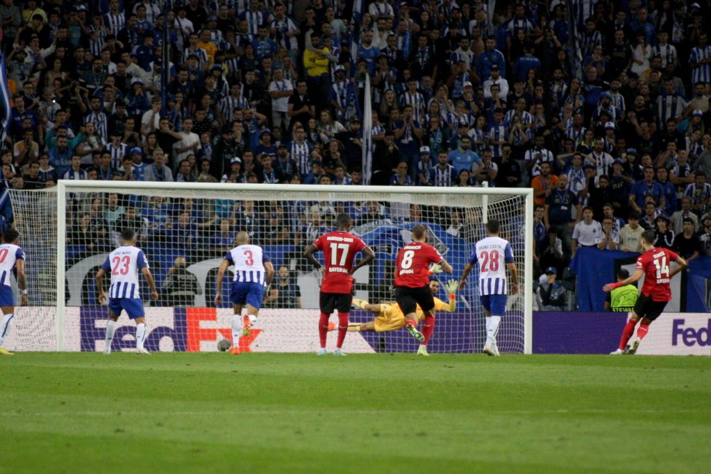 Na marcação Patrick Schik remataria sobre o lado direito da baliza, mas Diogo Costa adivinhou o lado e defendeu com valentia, mantendo o nulo que se registava ao intervalo, com mais posse dos Alemães (57%), perante um FC do Porto autenticamente manietado pelo Leverkusen.