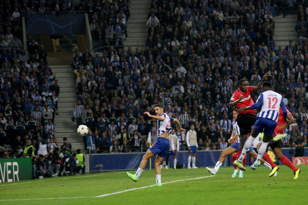 Ao terceiro jogo da fase de grupos da Liga dos Campeões deste ano, o Futebol Clube do Porto começava com zero pontos, e de vencer o jogo de maneira a entrar na corrida à passagem aos oitavos de final. Apesar da necessidade de marcar, nos primeiros 10 minutos, o FC do Porto praticamente não se aproximava da baliza adversária, e foi o Leverkusen que teve uma oportunidade por volta dos 6 minutos que se repetiu aos 9. Logo a seguir volta a ser Diaby a provocar pânico na grande área portista, com Hudson-Odoi a marcar mesmo, mas viria a ser invalidado pelo árbitro, por falta sobre Pepê.