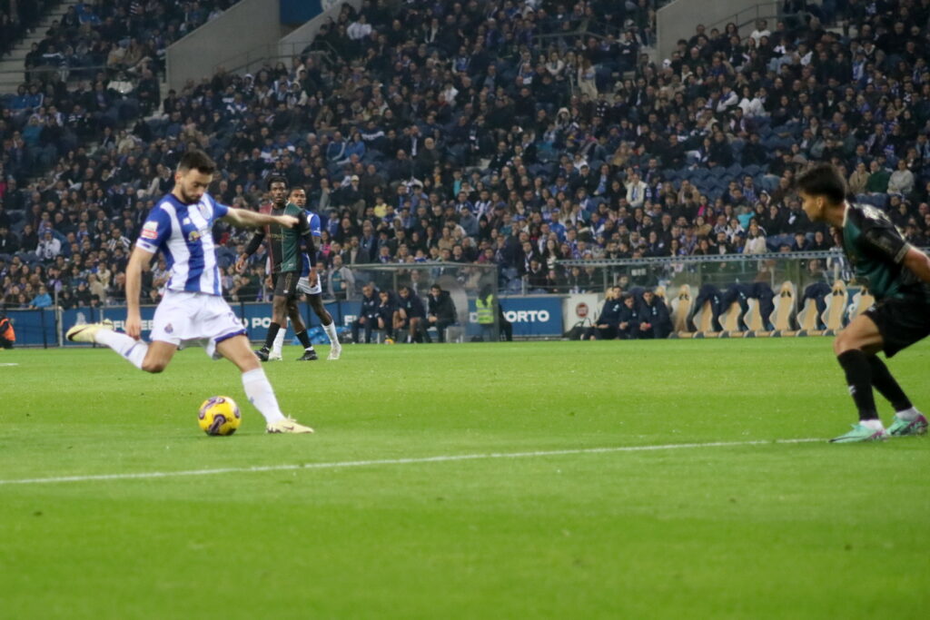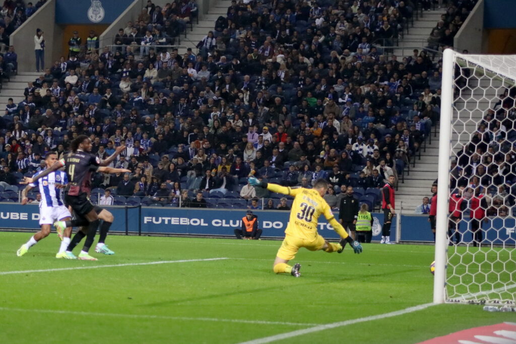 Na outra baliza, aos 43 minutos, foi a vez de Francisco Conceição acorrer a um bom centro de Evanilson, e rematar com o pior pé mas a acertar em Brígido, que nada poderia fazer se a bola não lhe fosse à figura.