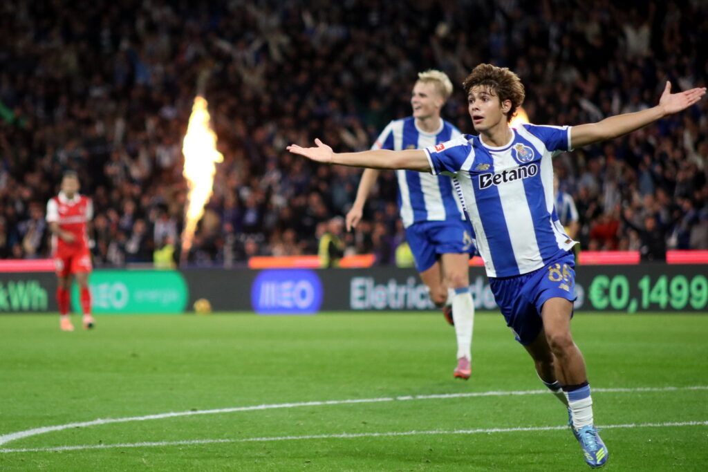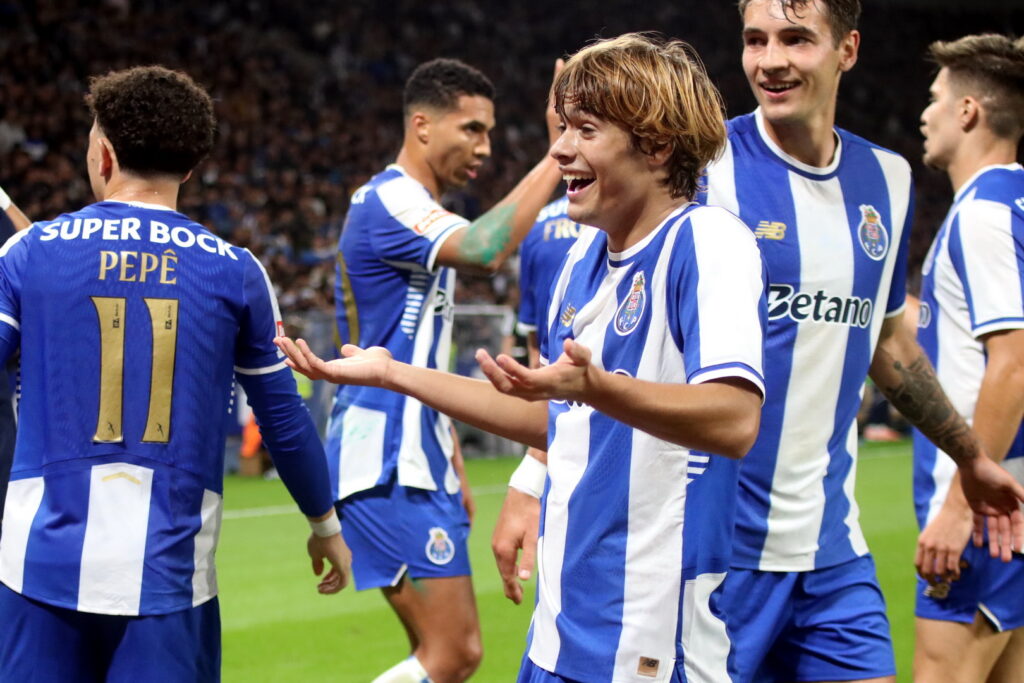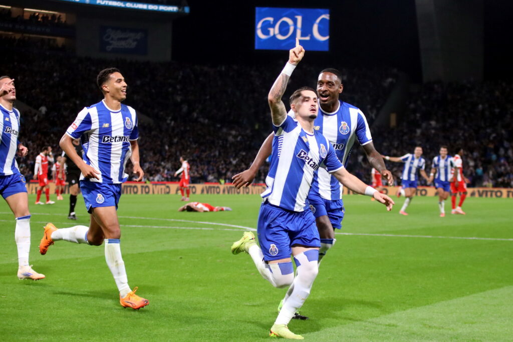 Equipa inicial do FC do Porto Ação na frente de ataque Gabri Veiga em ação o “pequeno” Mora a subir ao terceiro andar