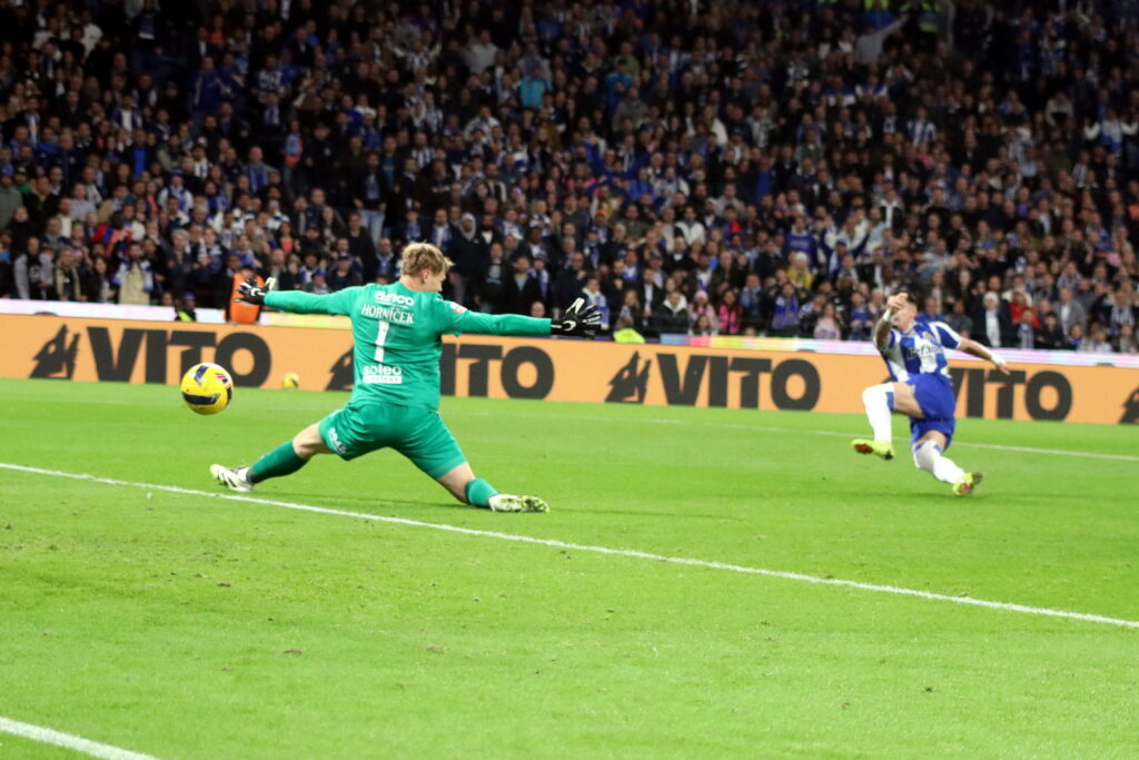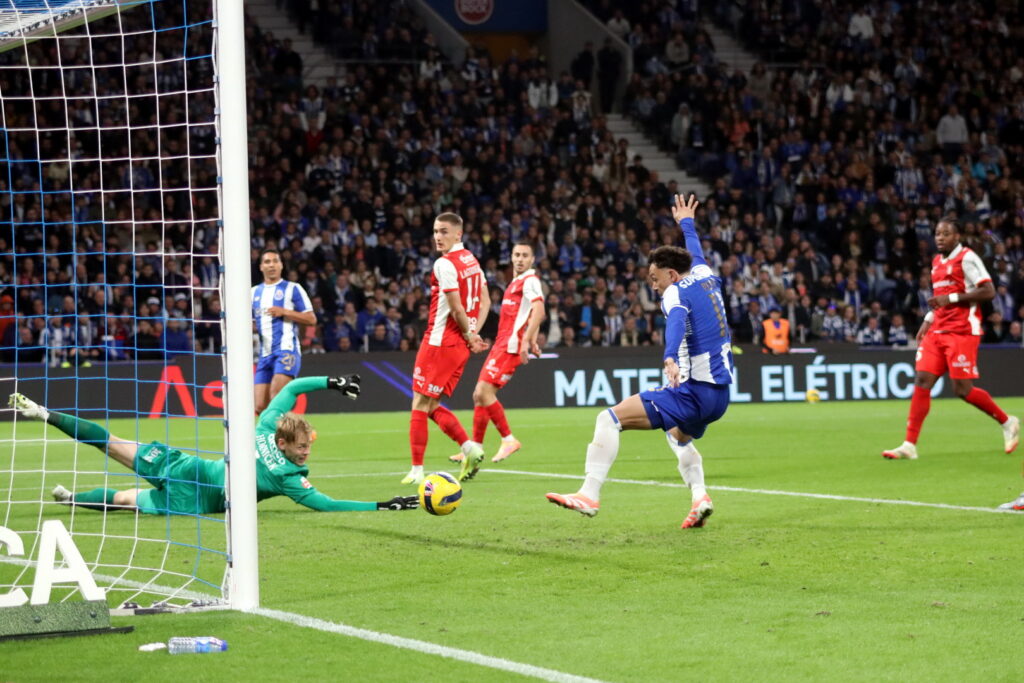 O FC Porto só conseguiu reagir aos 75 minutos, numa arrancada de Gabri Veiga, cujo lance acabou por sobrar para Deniz Gul, que rematou de pronto mas viu a bola passar ligeiramente ao lado do poste esquerdo de Hornícek.