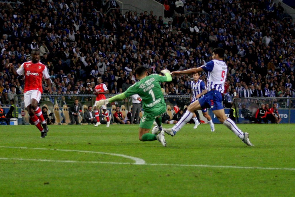 Só que chegado o minuto 32, Taremi isolou-se e perante a chegada de Mateus não conseguiu rematar, sobrando a bola para a Eustáquio que centrou da esquerda aparecendo Evanilson a introduzir a bola na baliza sem qualquer oponente, fazendo o primeiro do jogo.