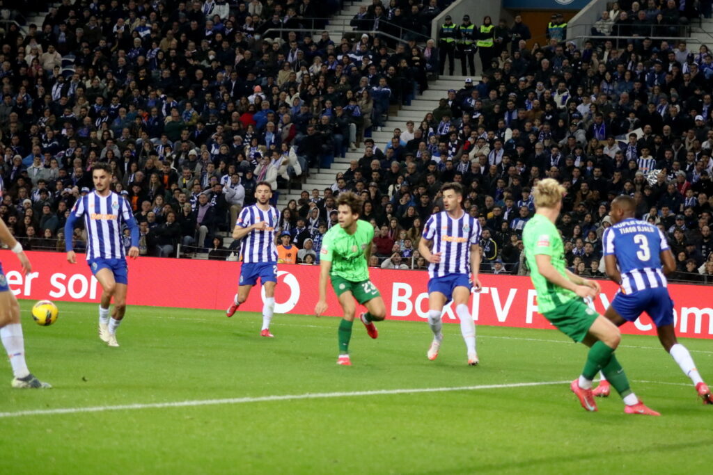 Com arbitragem de João Pinheiro, os primeiros minutos foram do Sporting como a posse de bola ao intervalo em 55%, mas a primeira oportunidade foi dos Dragões, por Eustáquio quando iam decorridos 28 minutos, a que se seguiu uma tentativa de Samu com um chapéu do meio campo, mas, caprichosamente a bola caiu nas redes de topo da baliza.