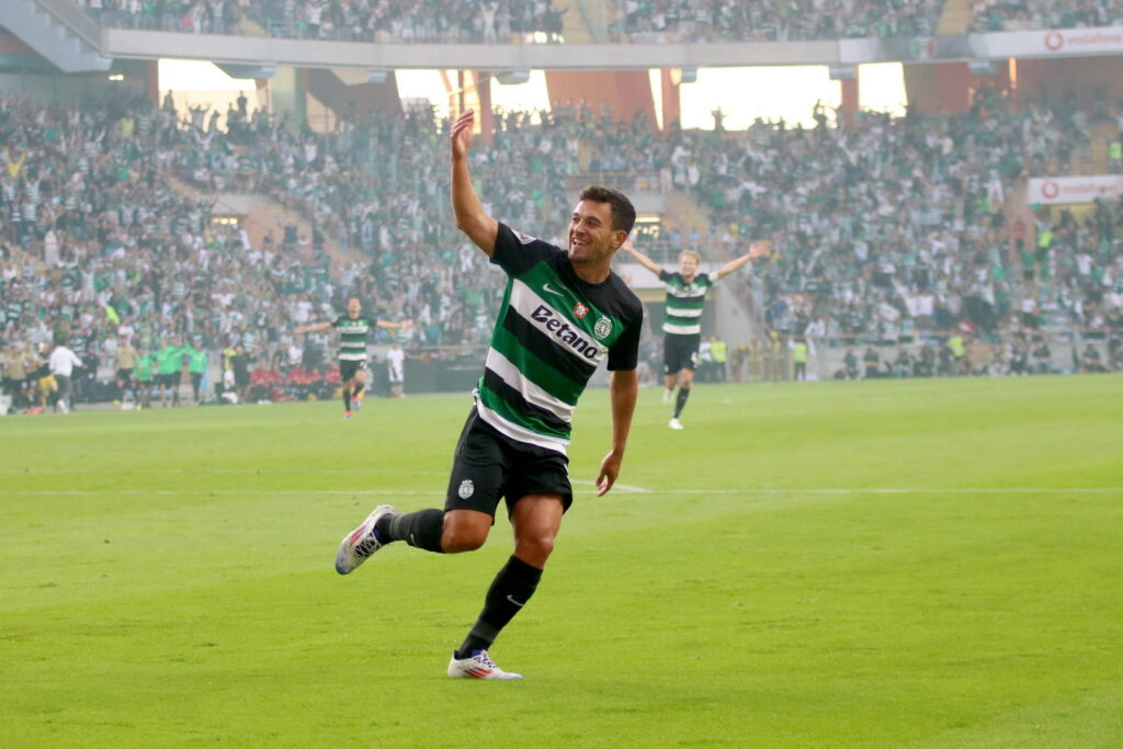 Gyokeres fugiu e centro Pedro Gonçalves rematou.. … e festeja o segundo do Sporting