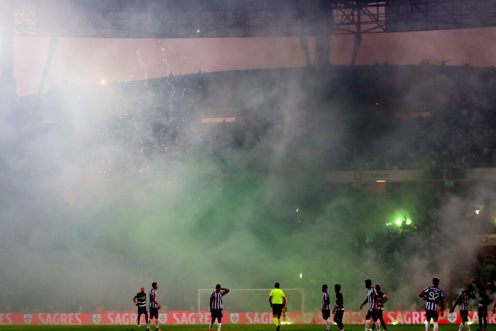 É velho e por demais conhecido o aforismo de que não se devem deitar foguetes antes da festa. A vencer por 3-0 aos 28 minutos, e mesmo após Galeno ter reduzido, os adeptos sportinguistas não resistiram, e fizeram um autêntico arraial popular na bancada norte do Estádio de Aveiro, com fogo de artificio e tochas cujo fumo obrigou a 2,5 minutos de interrupção de jogo, por falta de visibilidade.
